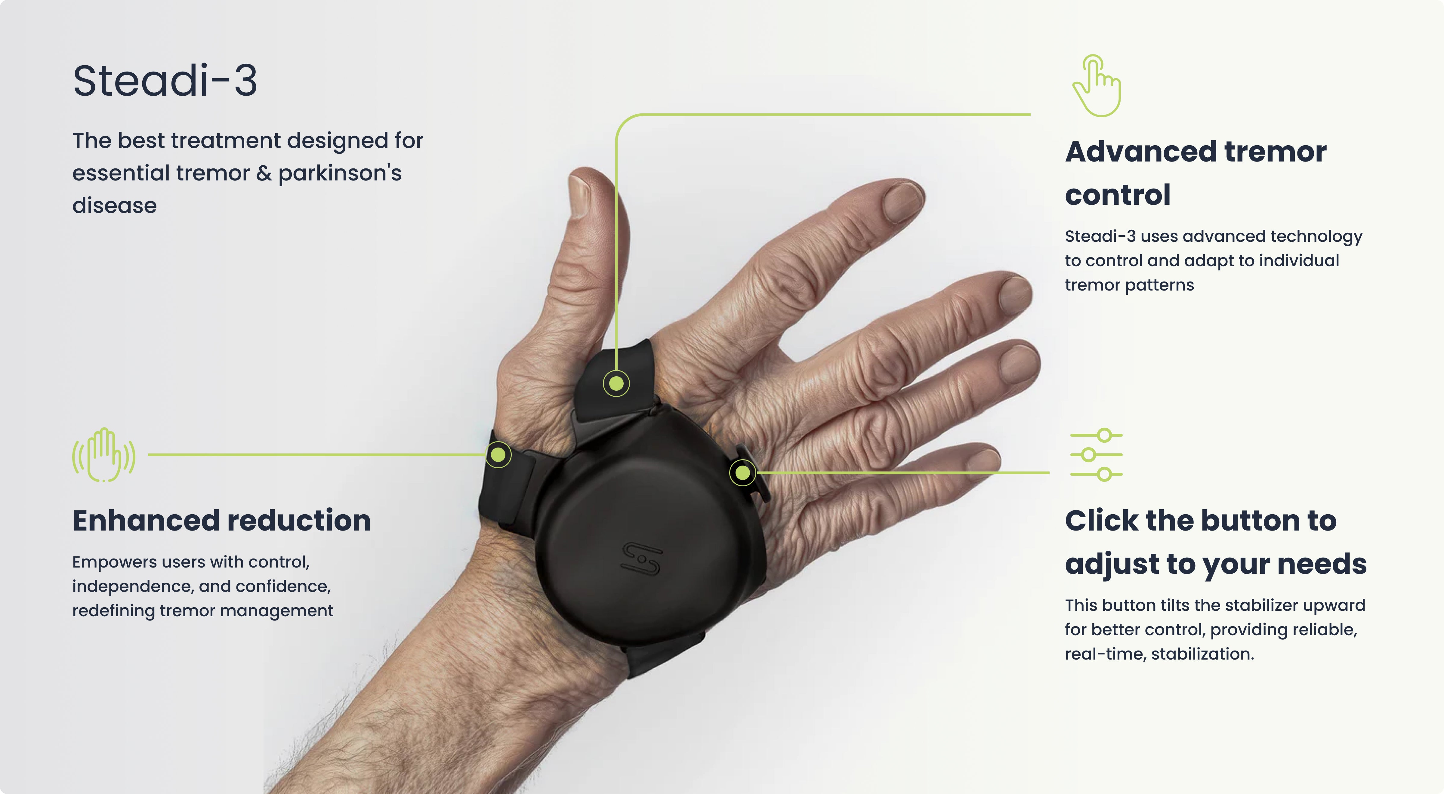 Steadi-3 is an FDA-registered Class I medical device designed to help mitigate hand tremors associated with diagnosed medical conditions such as Essential Tremor and Parkinson’s Disease. Under IRS Section 213(d), medical devices used for the diagnosis, cure, mitigation, treatment, or prevention of disease may qualify as eligible medical expenses. With a Letter of Medical Necessity from your healthcare provider, Steadi-3 may be eligible for FSA or HSA reimbursement as a medically necessary assistive device.